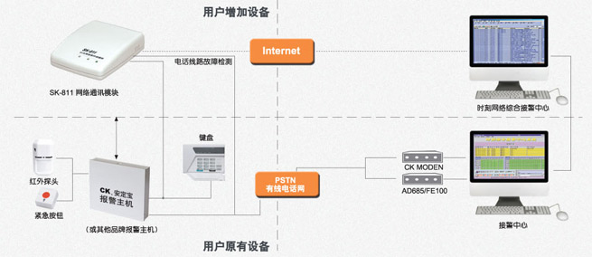 ◆ 設(shè)備升級(jí):將具有電話線報(bào)警功能的報(bào)警設(shè)備升級(jí)為網(wǎng)絡(luò)報(bào)警,提高數(shù)據(jù)傳送速率,增大數(shù)據(jù)傳送量