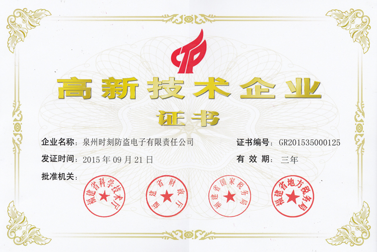 熱烈慶祝我司再度通過“國家高新技術(shù)企業(yè)”認(rèn)證,技術(shù)是企業(yè)第一生命力,我們將持續(xù)秉承“與時俱進(jìn)、時刻創(chuàng)新”的方針,爭創(chuàng)報警行業(yè)第一品牌。