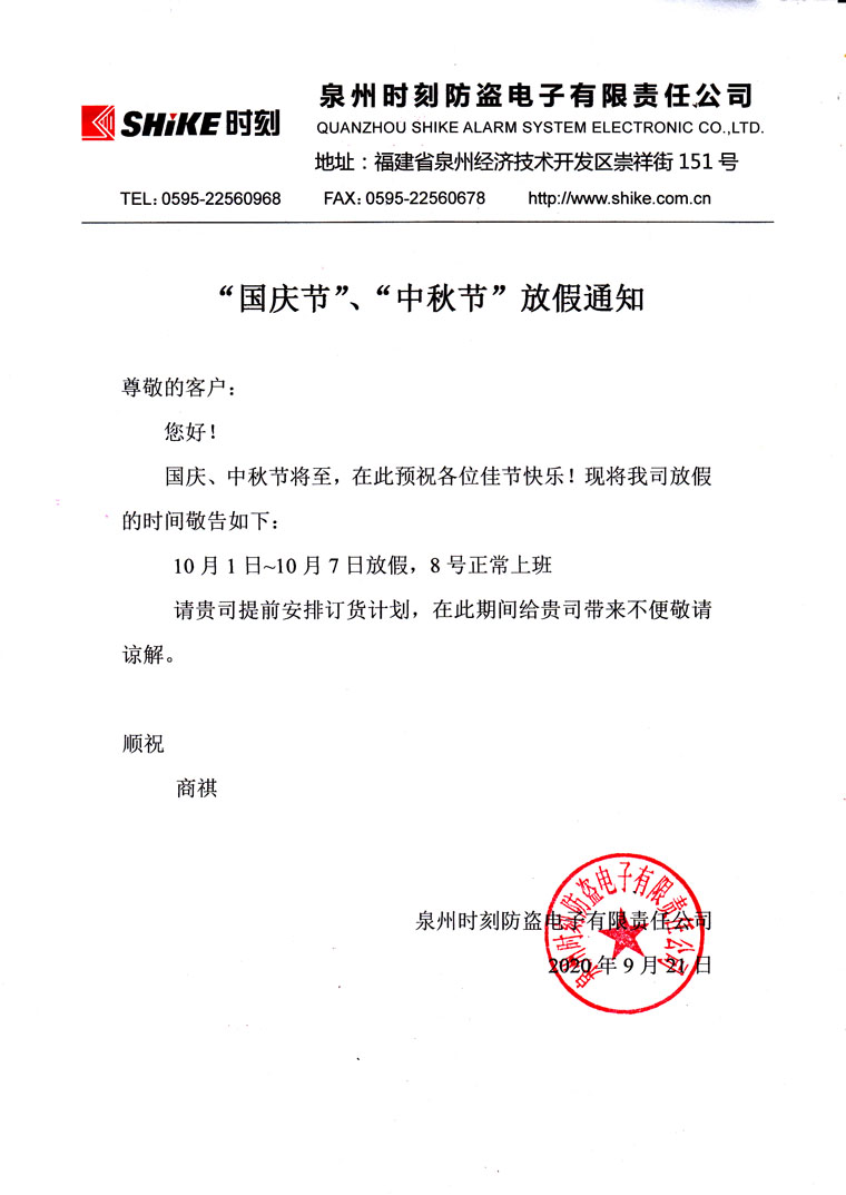 2020年“國(guó)慶節(jié)”“中秋節(jié)”雙節(jié)放假通知